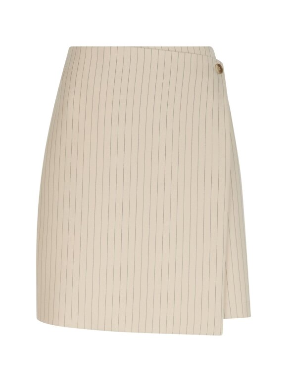 Cool omslagsnederdel i en flot pinstripe kvalitet. Modellen er 176 cm høj og bruger en størrelse 36.