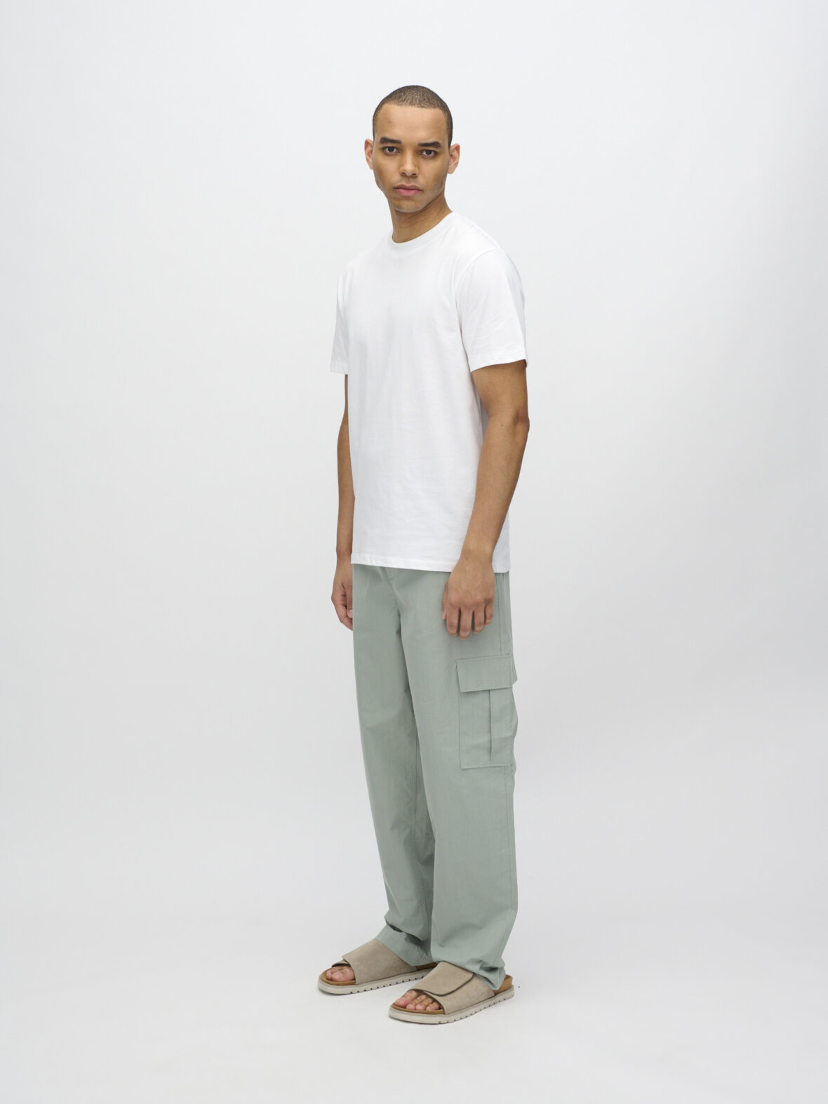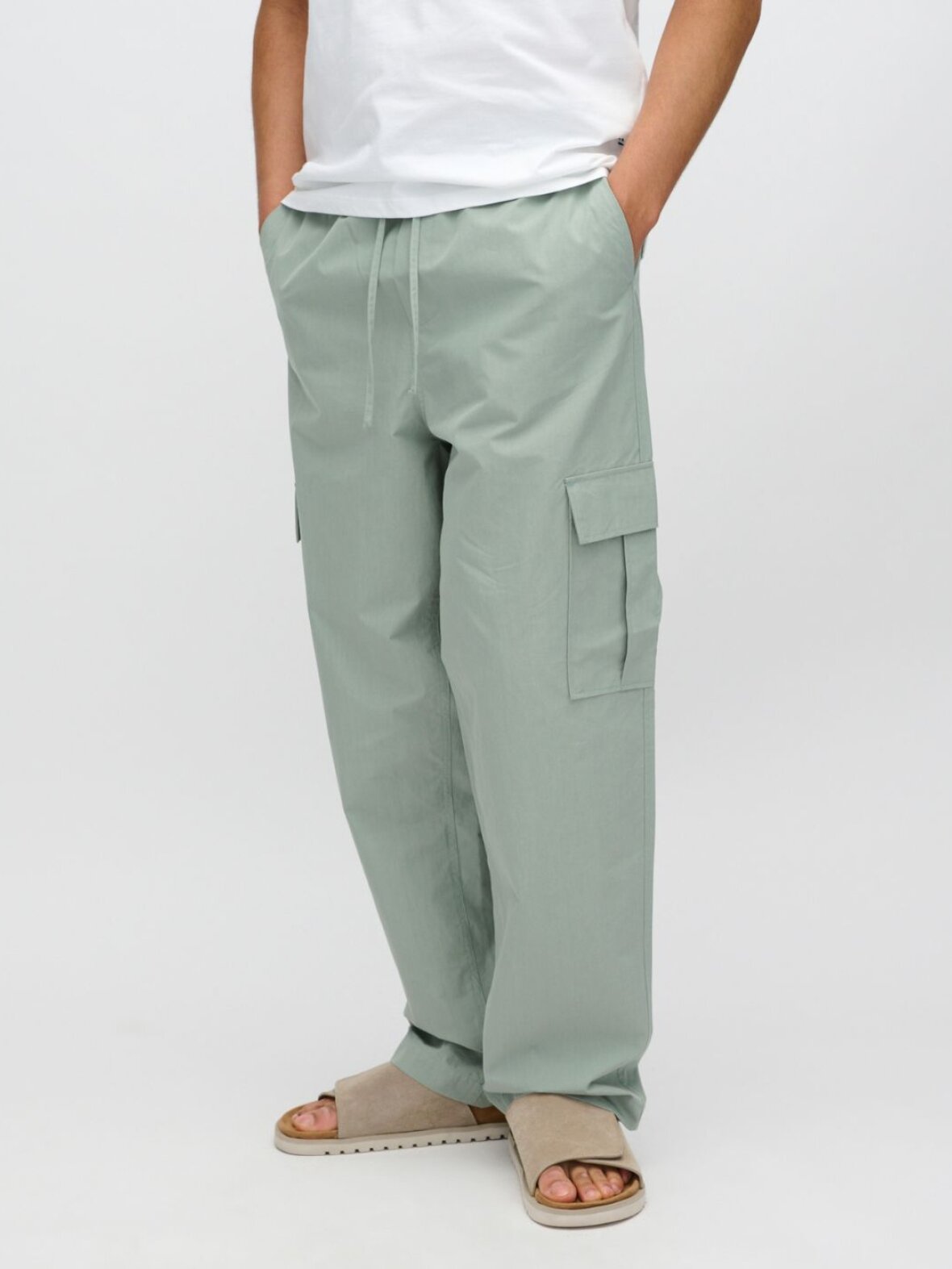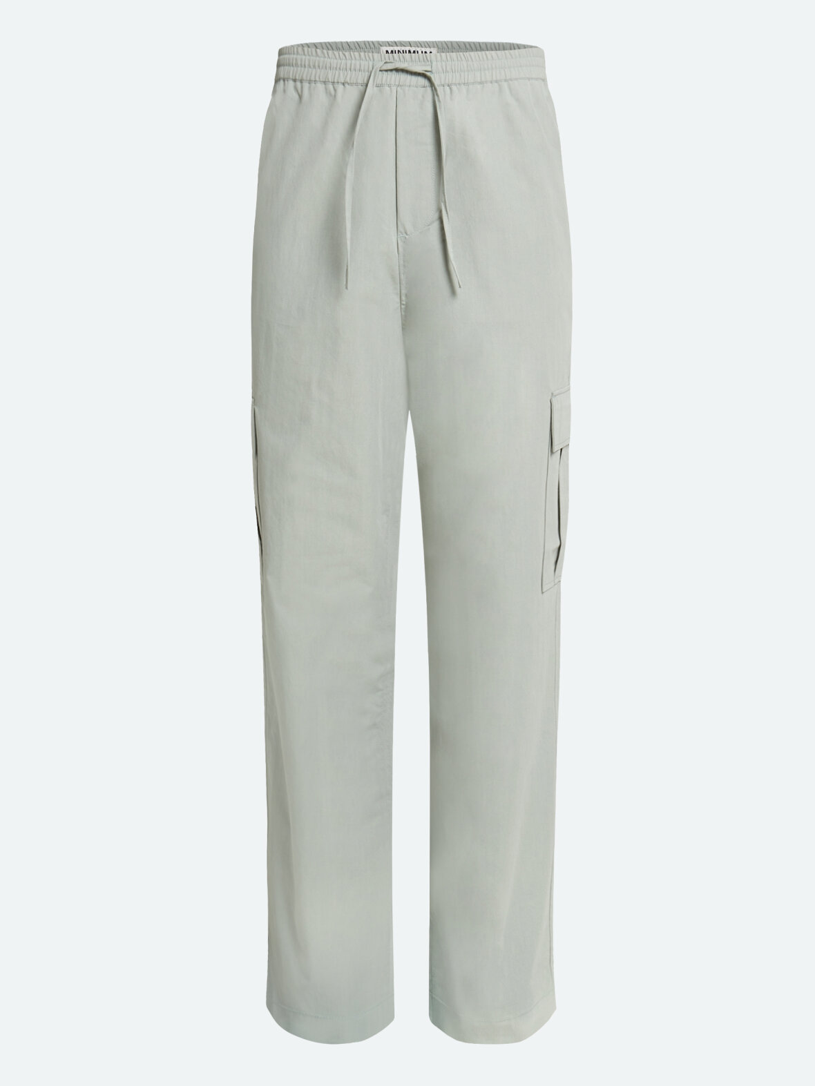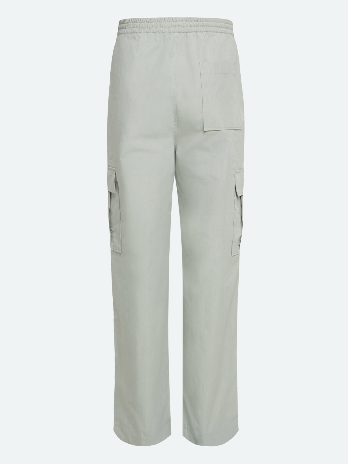 Bukserne har en afslappet pasform, der giver bevægelsesfrihed og et casual look. De er designet med klassiske cargodetaljer, to sidelommer og en enkelt lomme bagpå, som tilføjer både funktionalitet og stil. Med elastik i taljen og bindebånd får du en justerbar pasform, der sikrer optimal komfort hele dagen.