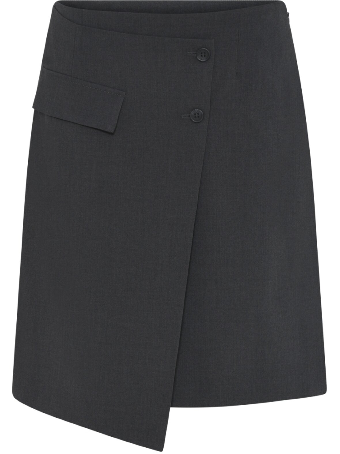 Trine Skirt er en moderne og elegant nederdel fra La Rouge med asymmetrisk wrap-effekt og en dekorativ lommeflap, der tilfører et diskret, men markant design-element. Den har en flatterende A-form og lukkes i siden med lynlås for et rent og sofistikeret udtryk.