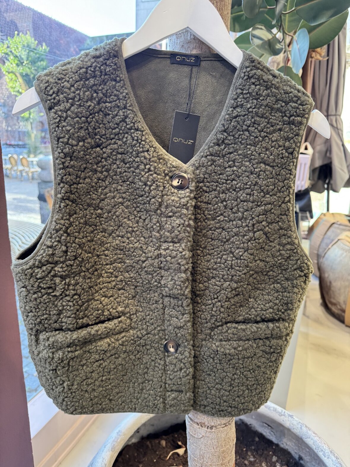 Lækker teddy vest fra Qnuz i en skøn græøn farve.