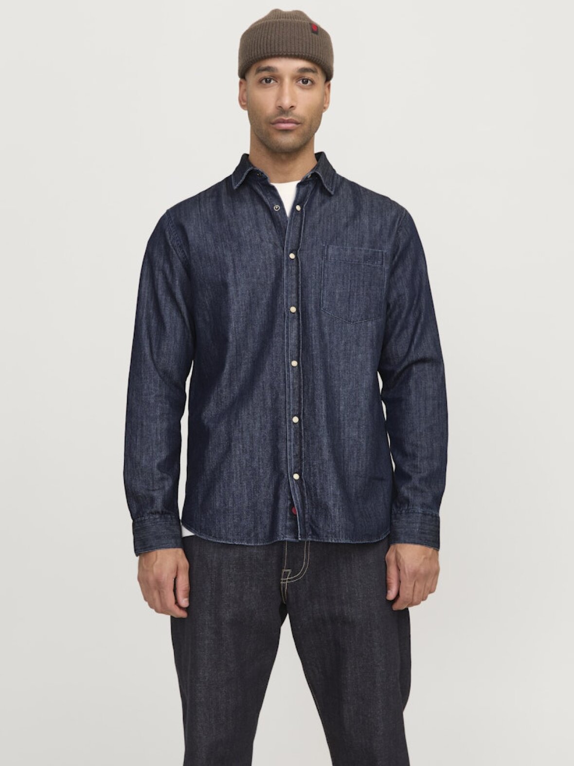 Skjorten fås i størrelserne S, M, L, XL og XXL, så du nemt kan finde den perfekte pasform. Den mørke denimfarve giver et sofistikeret look, der kan styles på mange forskellige måder. Kombiner den med et par chinos til en dag på kontoret, eller style den med shorts for et afslappet weekendlook.