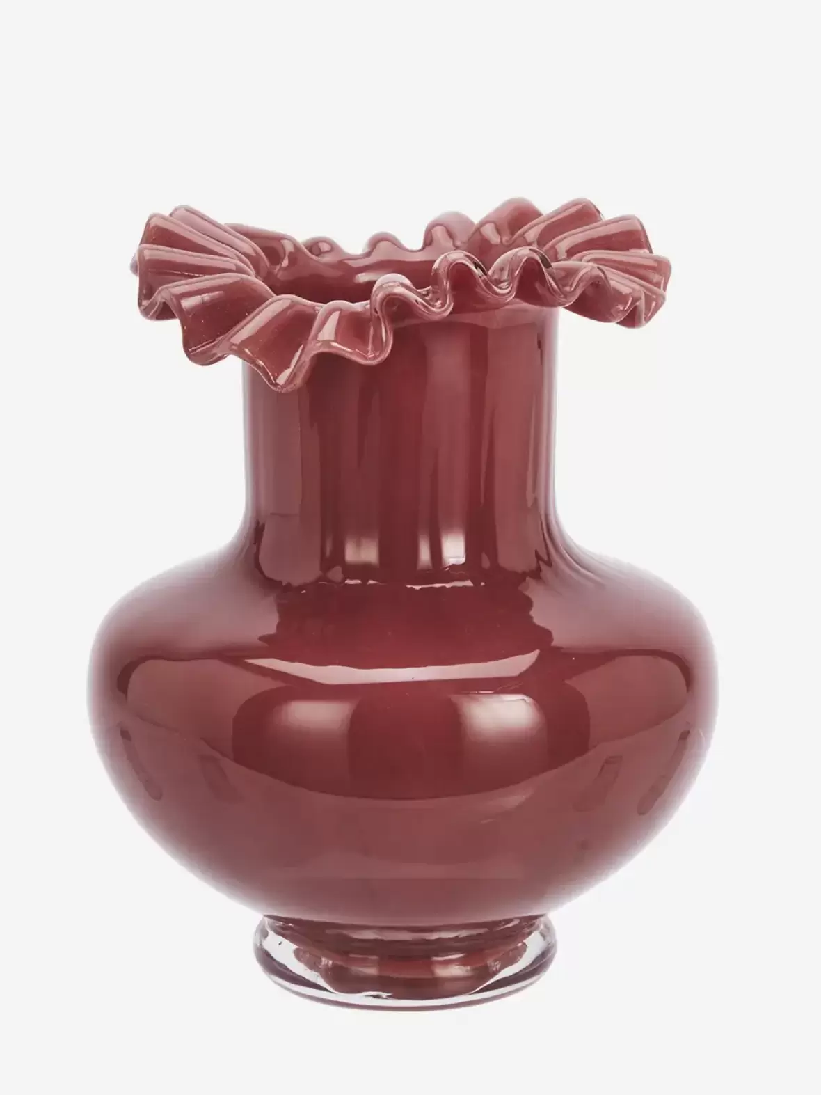 Opdag den smukke glasvase i maroon fra Madam Stoltz, der tilføjer et strejf af elegance til ethvert rum. Denne vases unikke farve og design gør den til det perfekte tilbehør til både moderne og klassiske indretninger. Uanset om du placerer den på en hylde, et bord eller vindueskarmen, vil den fange opmærksomhed og skabe en hyggelig atmosfære.