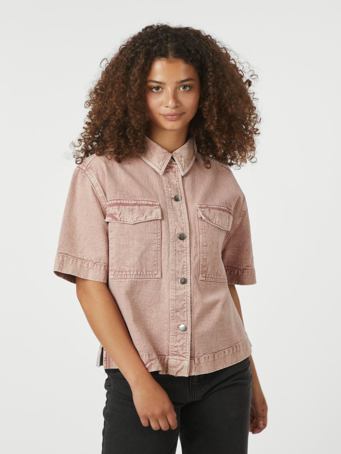 Cool kortærmet kanvas skjorte fra Neo Noir med krave og brystlommer.