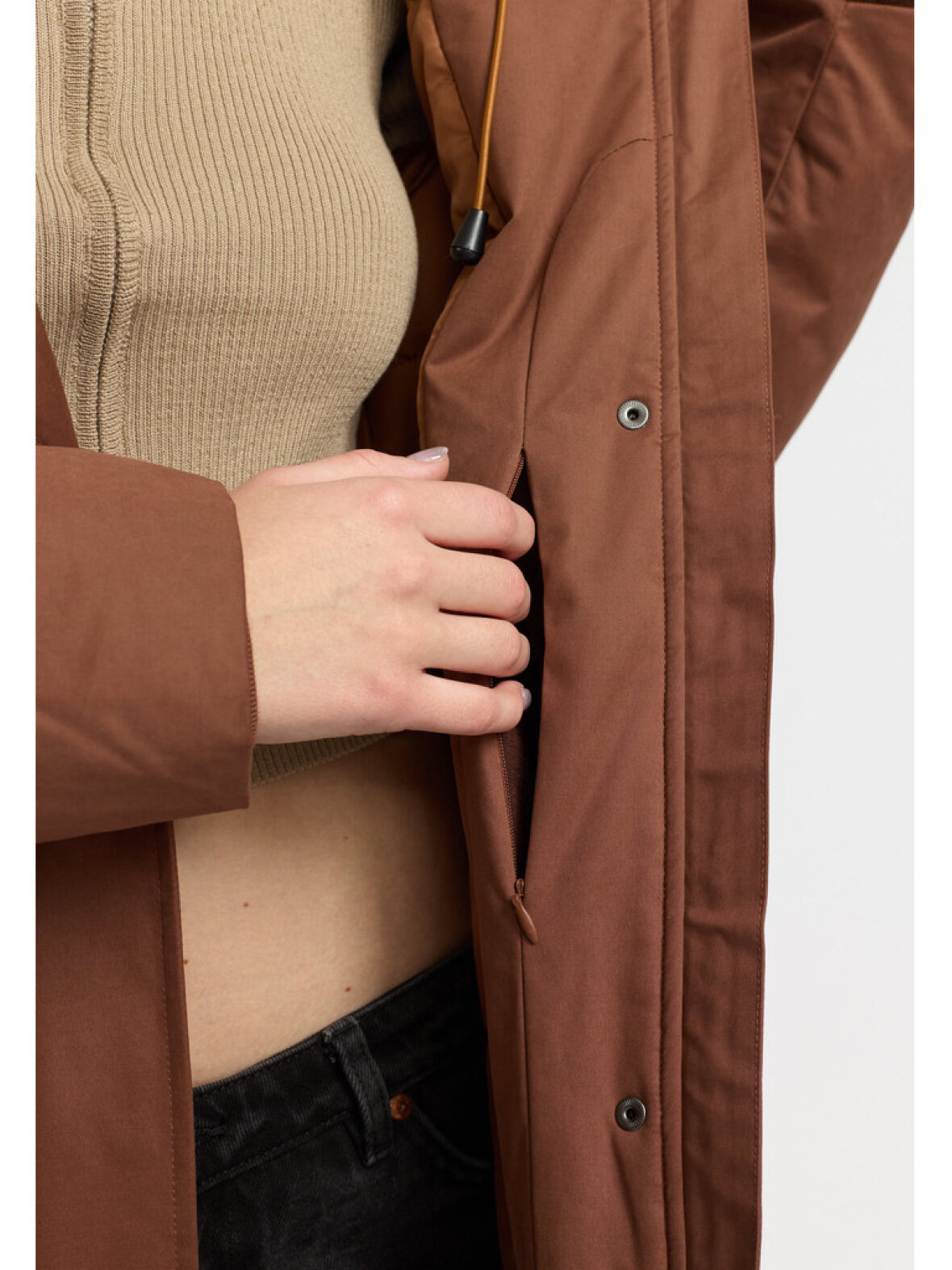 Parkaen fås i størrelserne S, M, L og XL, så du kan finde den perfekte pasform til din krop. Den varme brune farve gør den alsidig og nem at style med dine yndlingsjeans eller leggings. Uanset om du er på vej til arbejde, en weekendtur eller bare en hyggelig gåtur i parken, vil denne jakke være din go-to løsning.