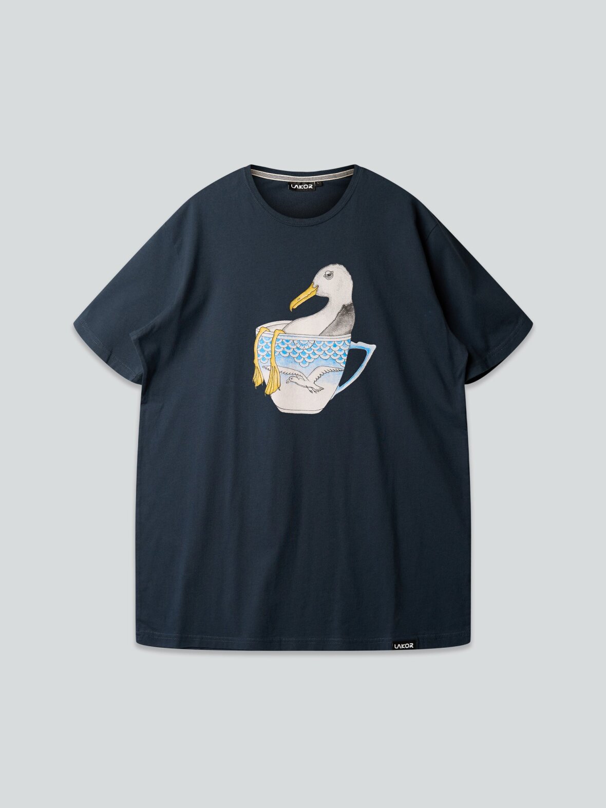 Opdag den unikke Seagull in a cup t-shirt fra Lakor – et must-have til enhver herregarderobe! Denne t-shirt er mere end bare et almindeligt stykke tøj; den byder på en sjov og kreativ design, der viser en sød måge i en kop, perfekt til den afslappede og legende stil. T-shirten kommer i en stilfuld blueberry farve, der er ideel til både hverdag og fest.