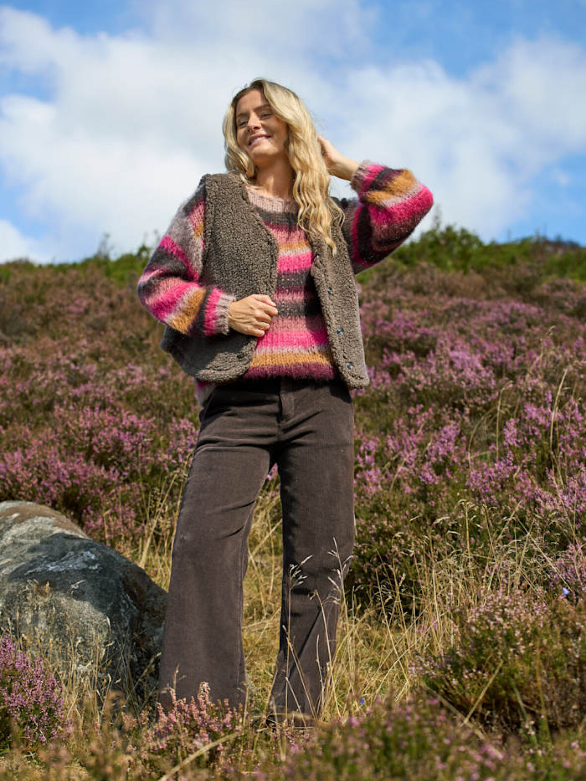 Denne smukke striktrøje er designet til at give dig både stil og komfort, perfekt til de køligere dage. Den kommer i en flot strib, der vil lyse ethvert outfit op.