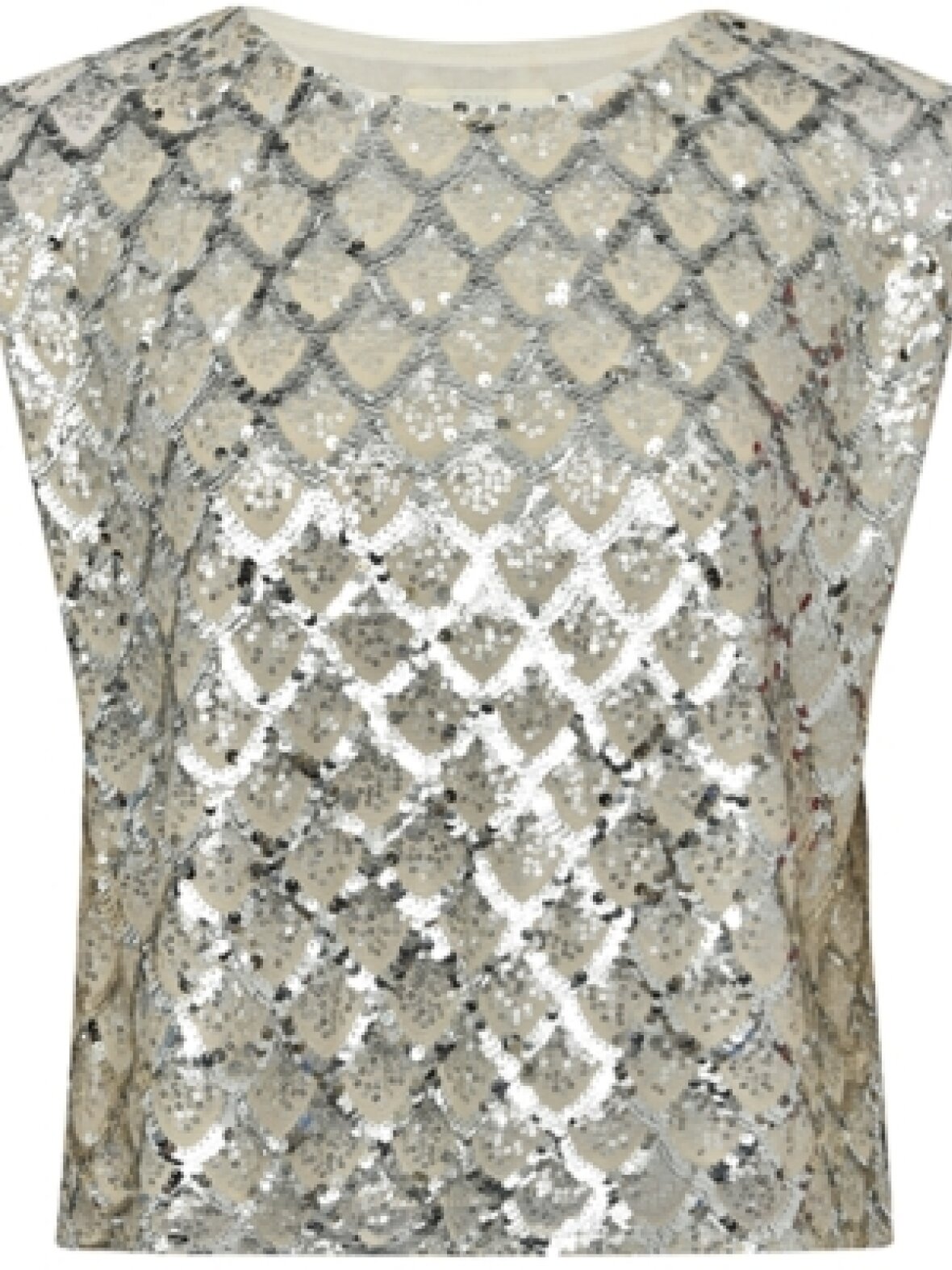 Festlig paillettop med skulderpude fra skønne Gossia.