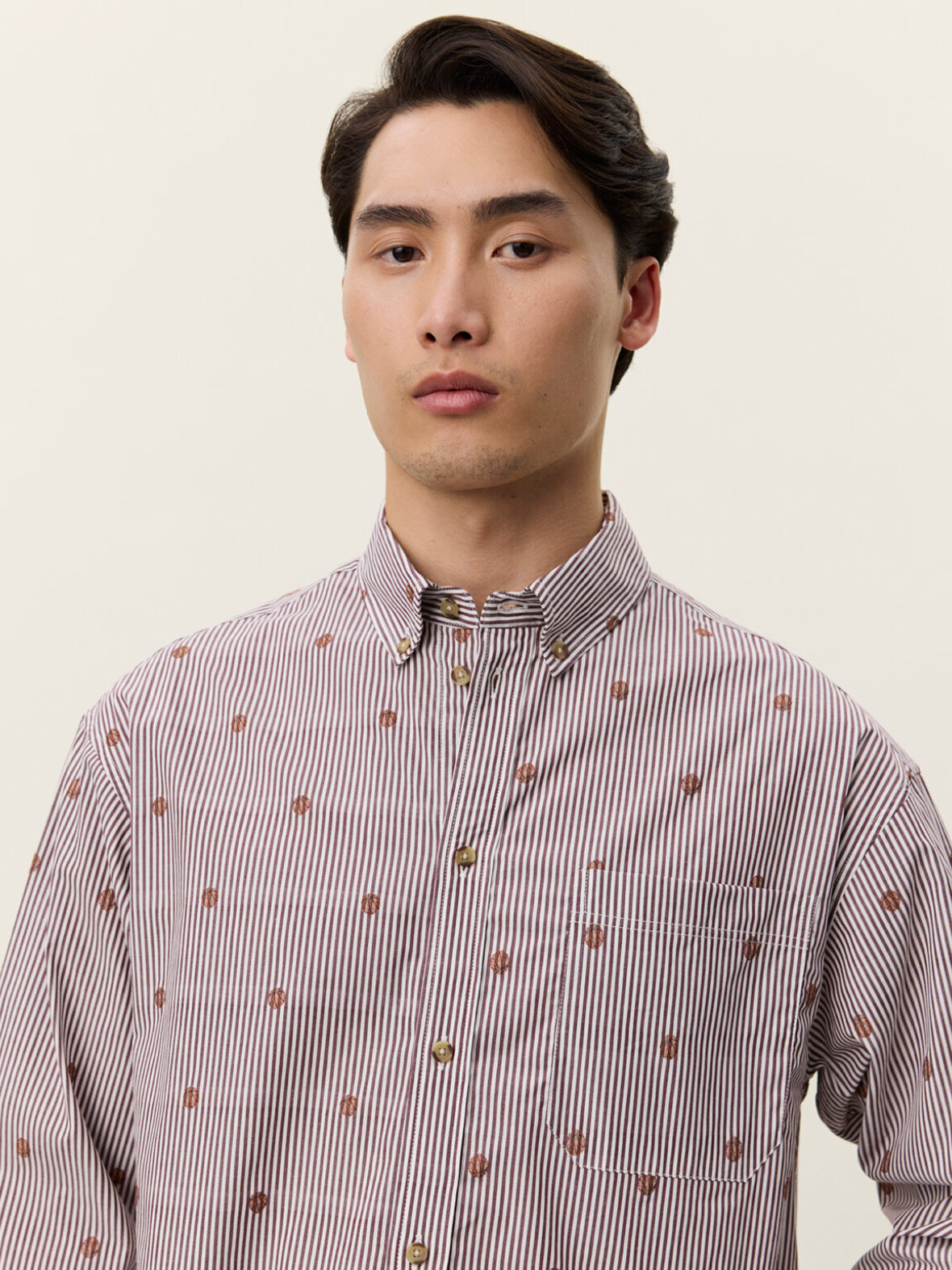 Opdag den nyeste tilføjelse til din garderobe med Kolton Stripe Basket AOE Shirt fra Les Deux. Denne stilfulde herreskjorte i en varm, fired brick red farve er perfekt til både hverdag og festlige lejligheder. Med sin unikke stribedesign og komfortable pasform er denne skjorte et must-have for enhver moderne mand, der ønsker at skille sig ud.