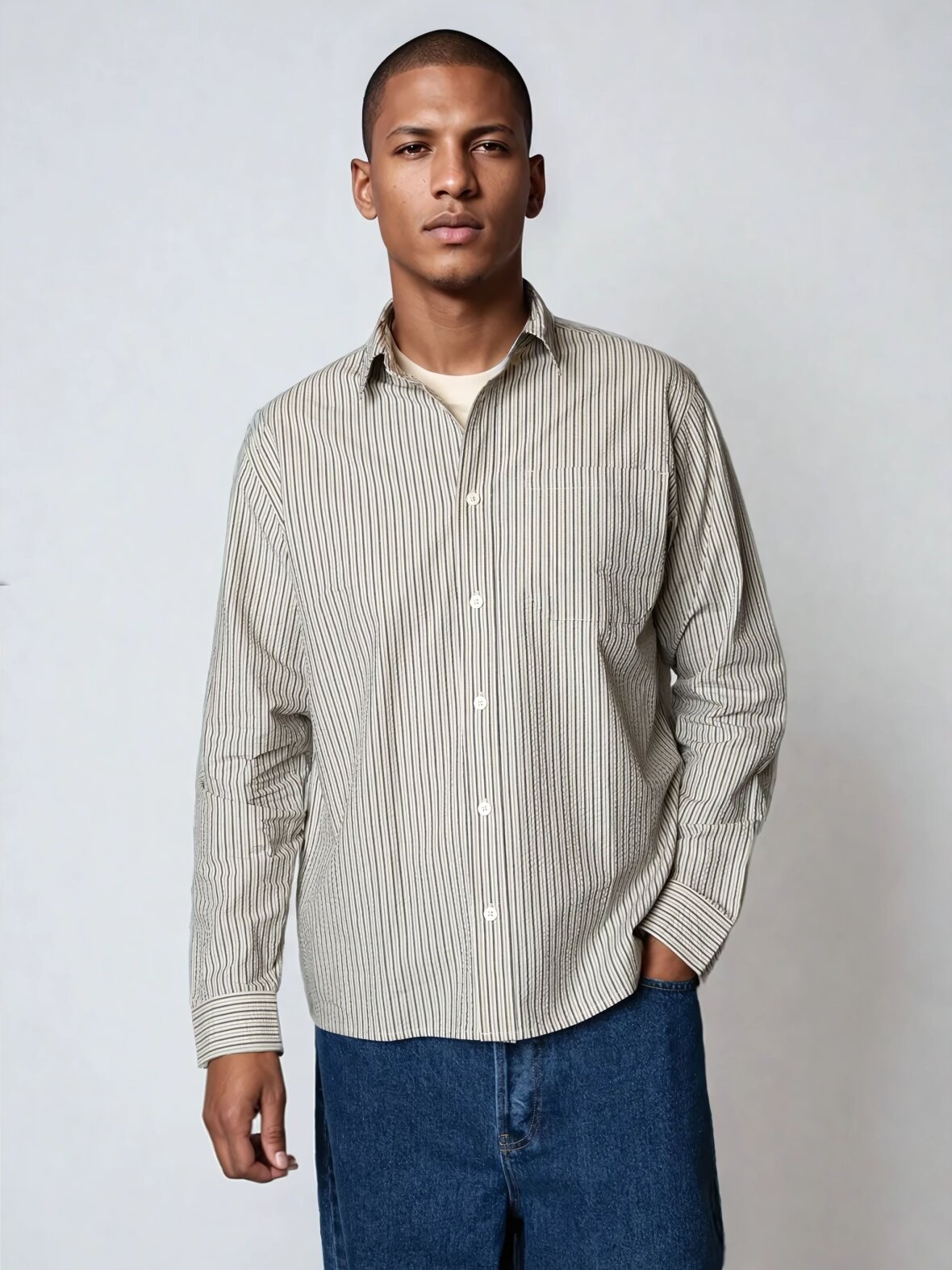 Opdag den nyeste tilføjelse til din garderobe med Plenum Mosh Stripe skjorten i farven Light Sand. Denne stilfulde herreskjorte fra det anerkendte mærke Plenum Studio er designet til at give dig et moderne og afslappet look, uanset om du skal til arbejde eller en weekendudflugt.