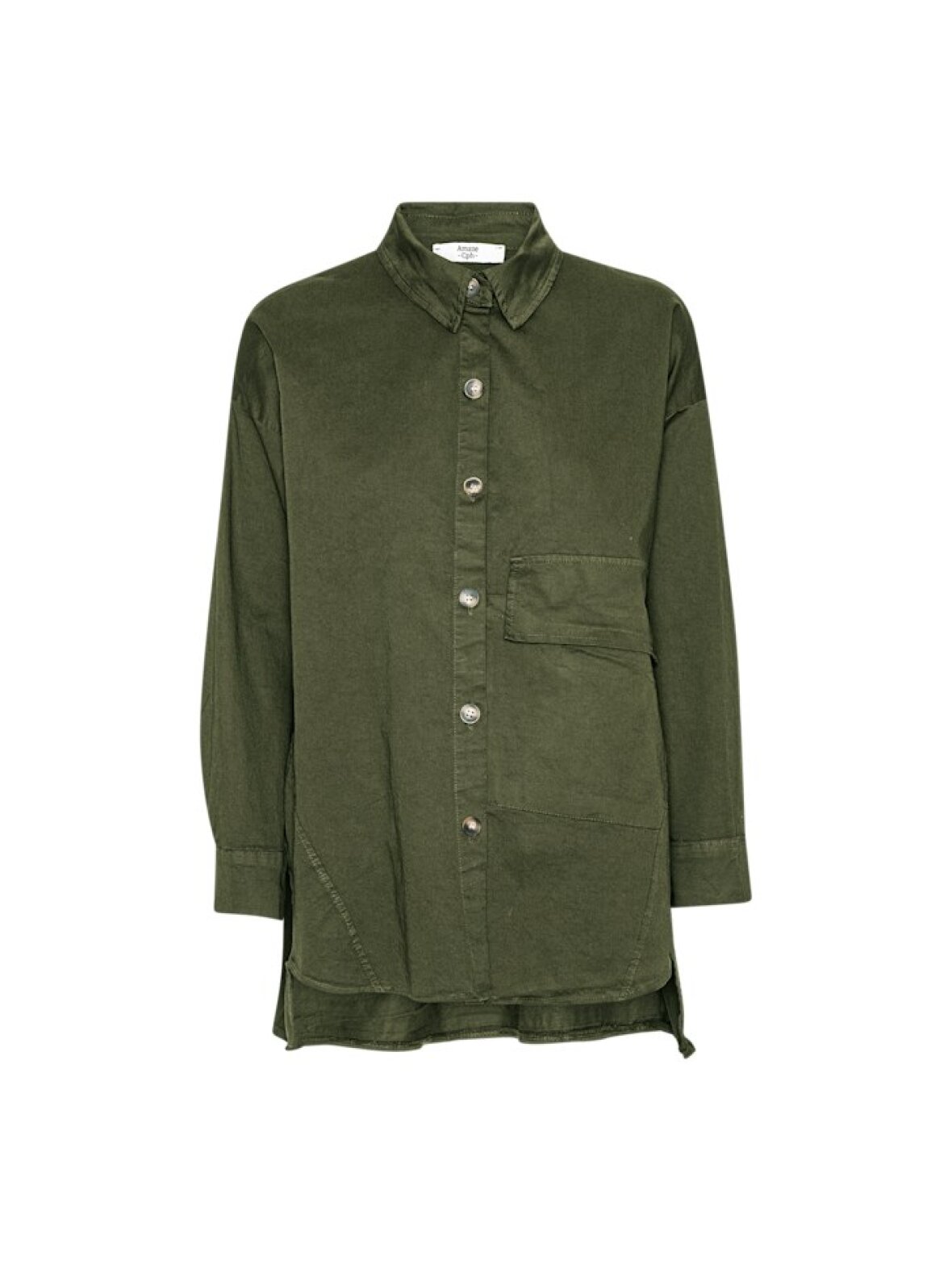 Adaline skjorten er ideel til både hverdag og festlige anledninger. Den kan nemt styles med jeans til en afslappet look eller dresses op med en nederdel for et mere elegant udtryk. Den militære farve tilføjer et edgy element, der skiller sig ud, samtidig med at den forbliver tidløs.