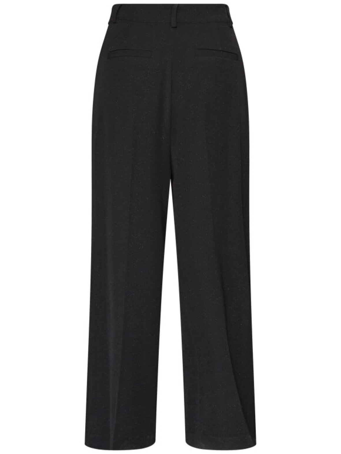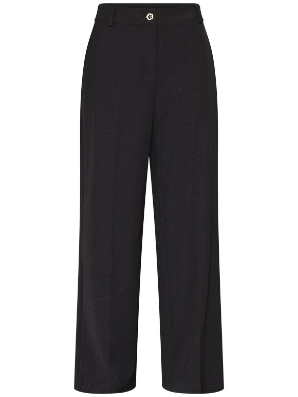 Bukserne fås i størrelserne S, M, L og XL, så du kan finde den perfekte pasform, uanset din kropstype. Det bløde og stretchy materiale sikrer, at du kan bevæge dig frit, samtidig med at du ser fantastisk ud. Den tidløse sorte farve med glitterdetaljer gør dem lette at style med alt fra en simpel t-shirt til en elegant bluse.
