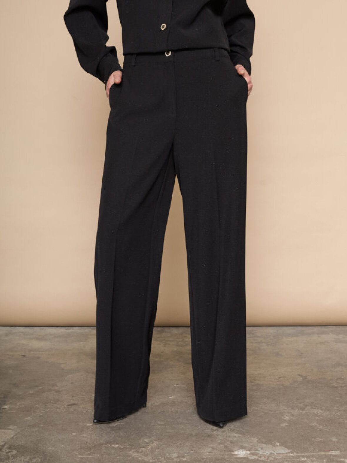 Med Love857-6 Bukserne i sort glitter vil du altid føle dig selvsikker og stilfuld. Gør dig klar til at imponere, uanset hvor du går hen. Gå ikke glip af chancen for at tilføje disse must-have bukser til din samling – bestil dem i dag og vær blandt de første til at eje dem!