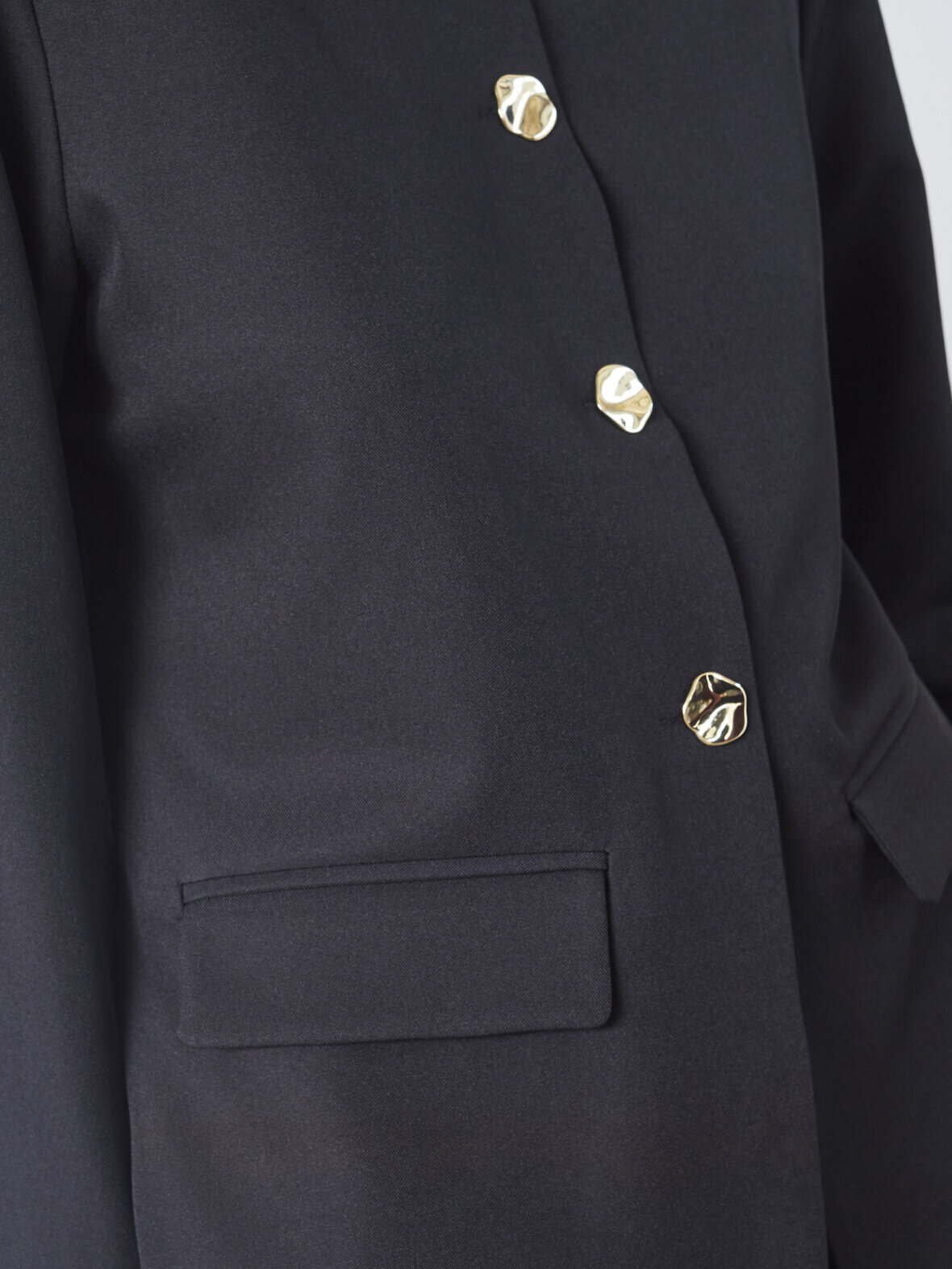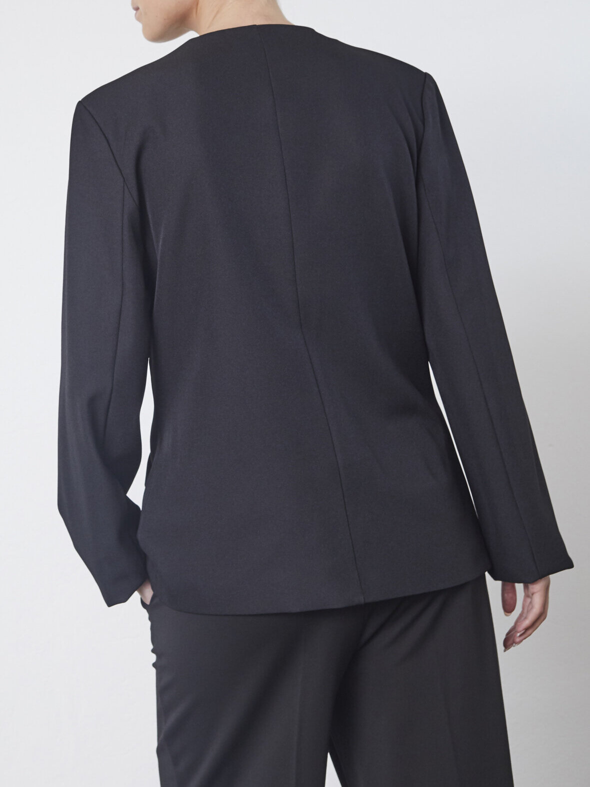 Blazeren er lavet af kvalitetsmaterialer, der sikrer både komfort og holdbarhed, så du kan føle dig godt tilpas hele dagen. Den klassiske sorte farve gør den nem at style med alt fra jeans til kjoler, hvilket gør den til et alsidigt valg for enhver kvinde.