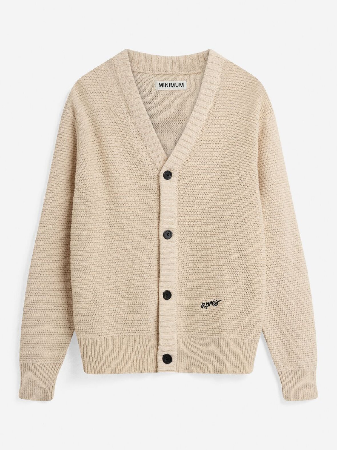Gør dit outfit komplet med Minimums kvalitet og stil. Den tidløse CoCo Milk farve giver en lys og frisk fornemmelse, som passer til enhver sæson. Gå ikke glip af muligheden for at tilføje denne alsidige cardigan til din garderobe. Shop nu og oplev komfort og stil i én pakke!