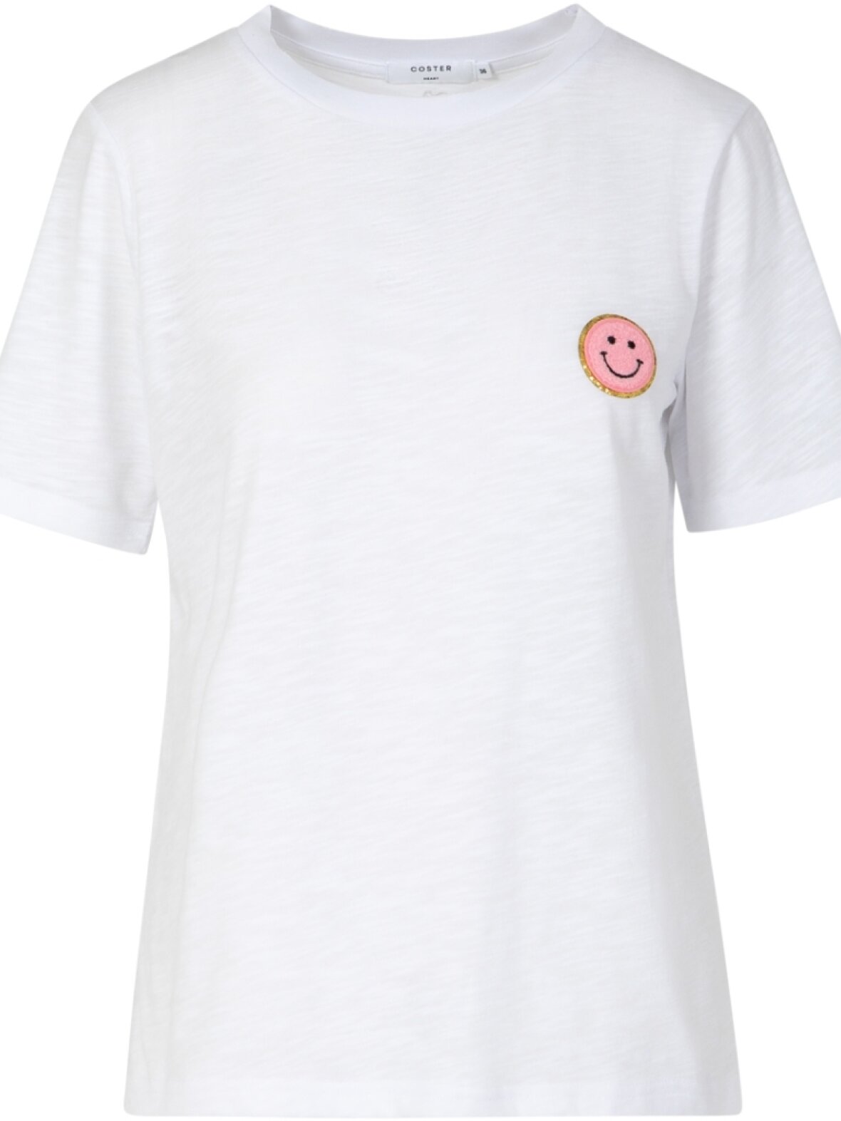 Opdag den perfekte kombination af stil og komfort med CC Smile t-shirten i hvid og pink fra Coster Copenhagen. Denne t-shirt er designet til at give dig et friskt og moderne look, uanset om du er på vej til arbejde, en afslappet weekend eller en aften med vennerne. Med sit enkle, men alligevel iøjnefaldende design passer den perfekt ind i enhver dames garderobe.