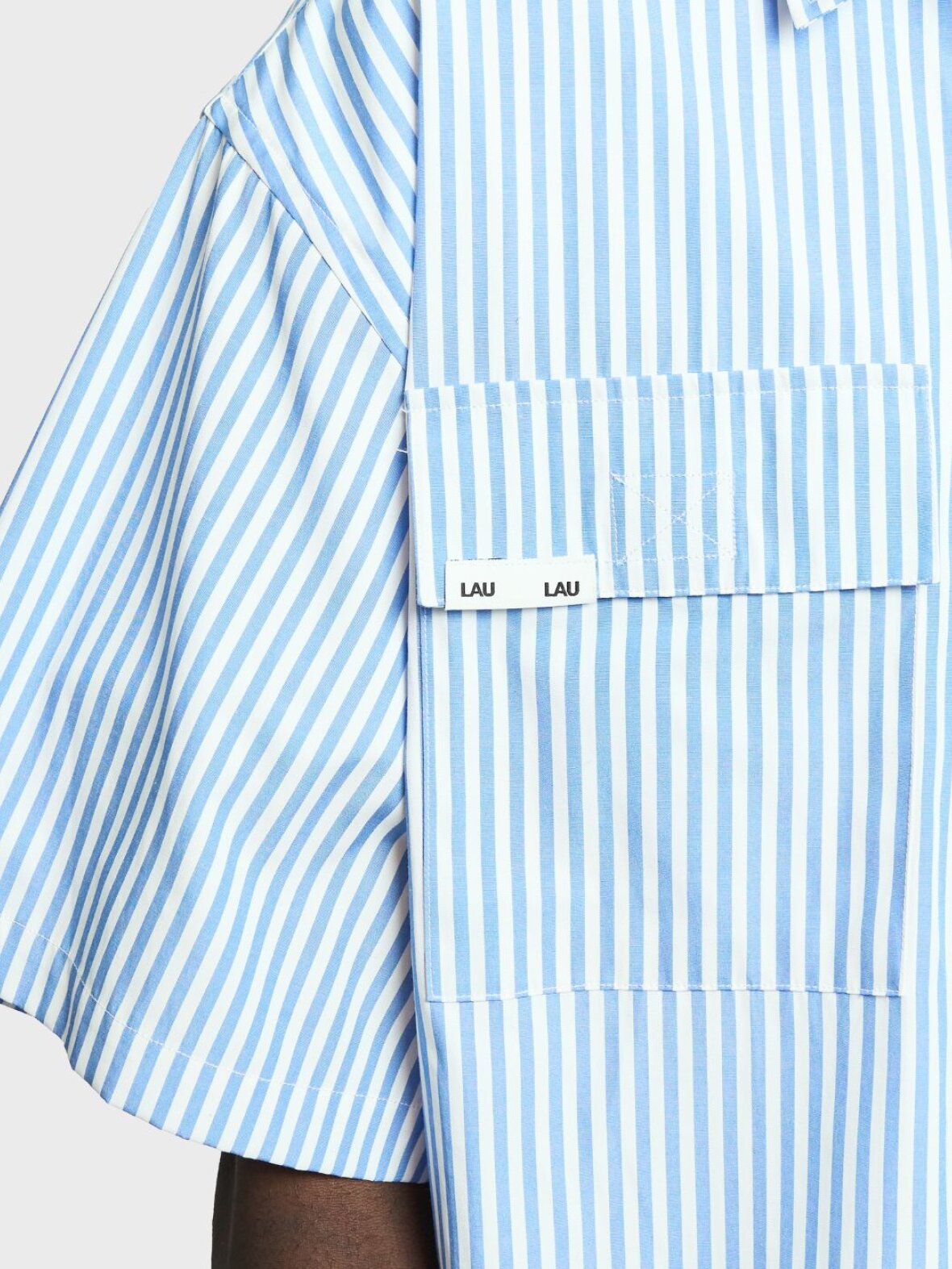 Opdag den nyeste tilføjelse til din garderobe med LAUShort Sleeve Striped Shirt i lækkert blå og hvid. Denne trendy skjorte fra det anerkendte mærke LAU--LAU er perfekt til både afslappede og mere formelle anledninger. Med sin korte ærmelængde og lette materiale er denne skjorte ideel til de varme dage, hvor du stadig ønsker at se stilfuld ud.