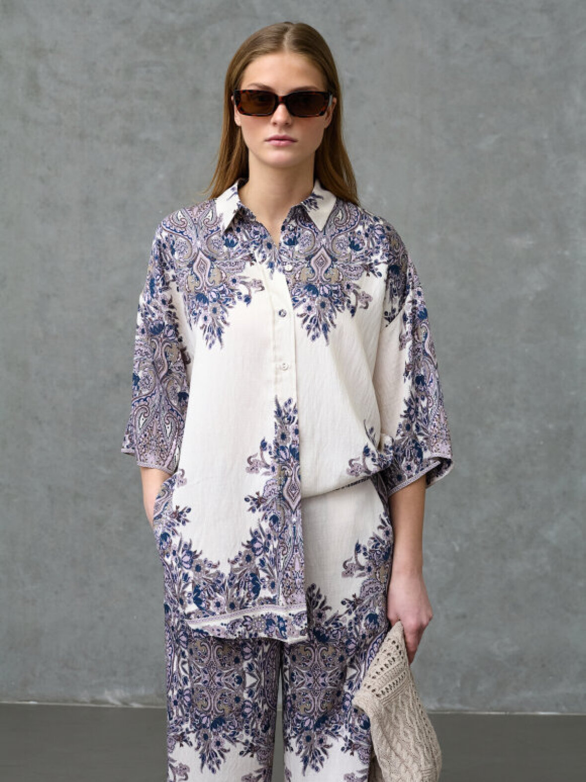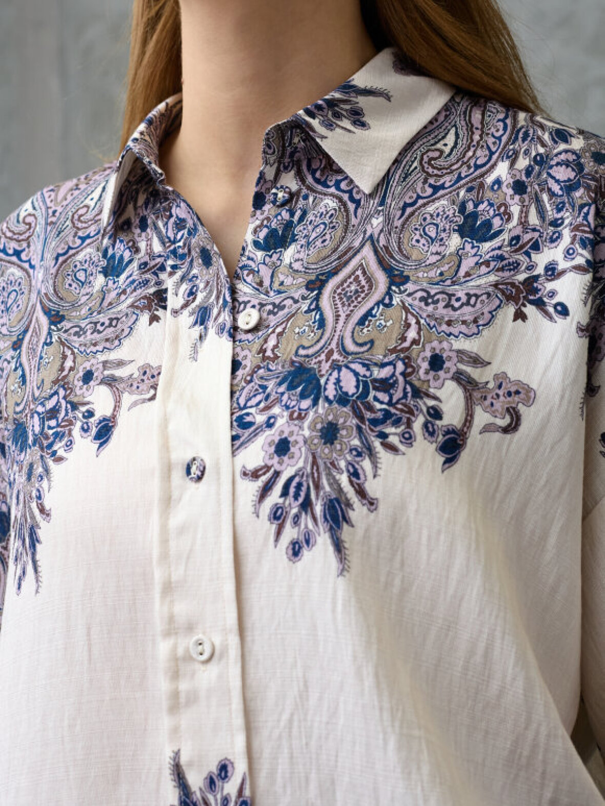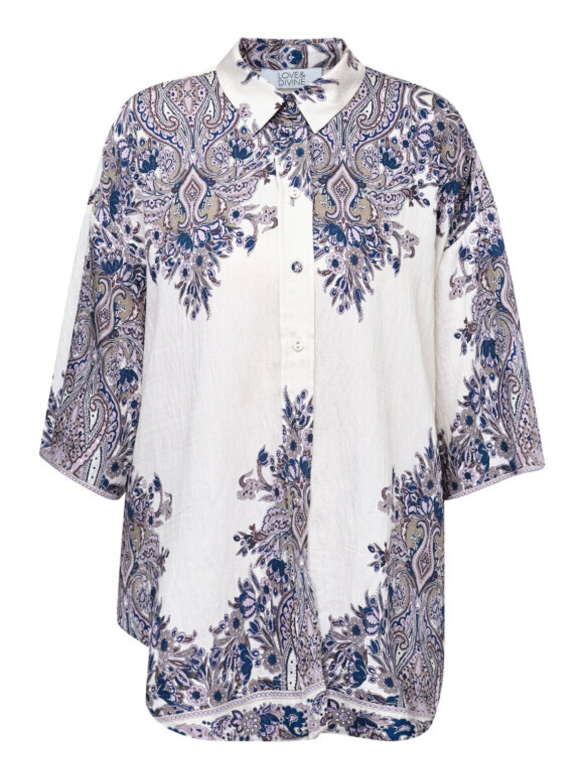 Opdag Love971-17 Skjorte Champagne fra det anerkendte mærke Love & Divine – en must-have til enhver moderne kvindes garderobe. Denne skjorte, der er ny i sortimentet, præsenterer sig i en smuk champagnefarvet paisley-mønster, der tilføjer et strejf af elegance til enhver påklædning. Uanset om du skal til en fest, på kontoret eller blot vil føle dig godt tilpas derhjemme, er denne skjorte det perfekte valg.