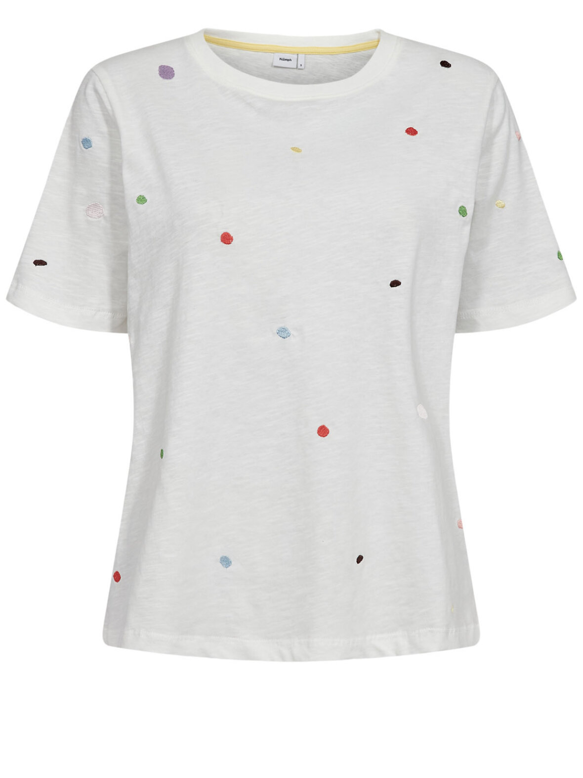 Opdag den nyeste tilføjelse til din garderobe med NUDelora T-shirt Cloud Danser fra det populære brand Numph. Denne T-shirt er designet til kvinder, der ønsker at kombinere stil med komfort. T-shirten fås i en dejlig farve, CLOUD DANCER, der tilføjer et friskt pust til enhver outfit. Uanset om du skal til en afslappet brunch med vennerne eller en hyggelig aften derhjemme, er denne T-shirt det perfekte valg.