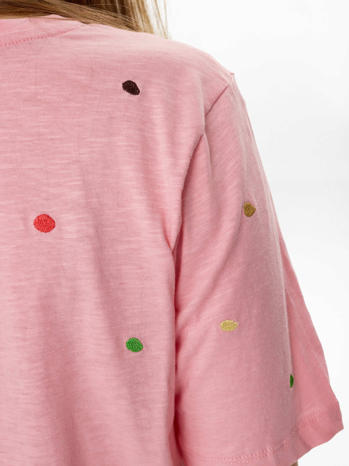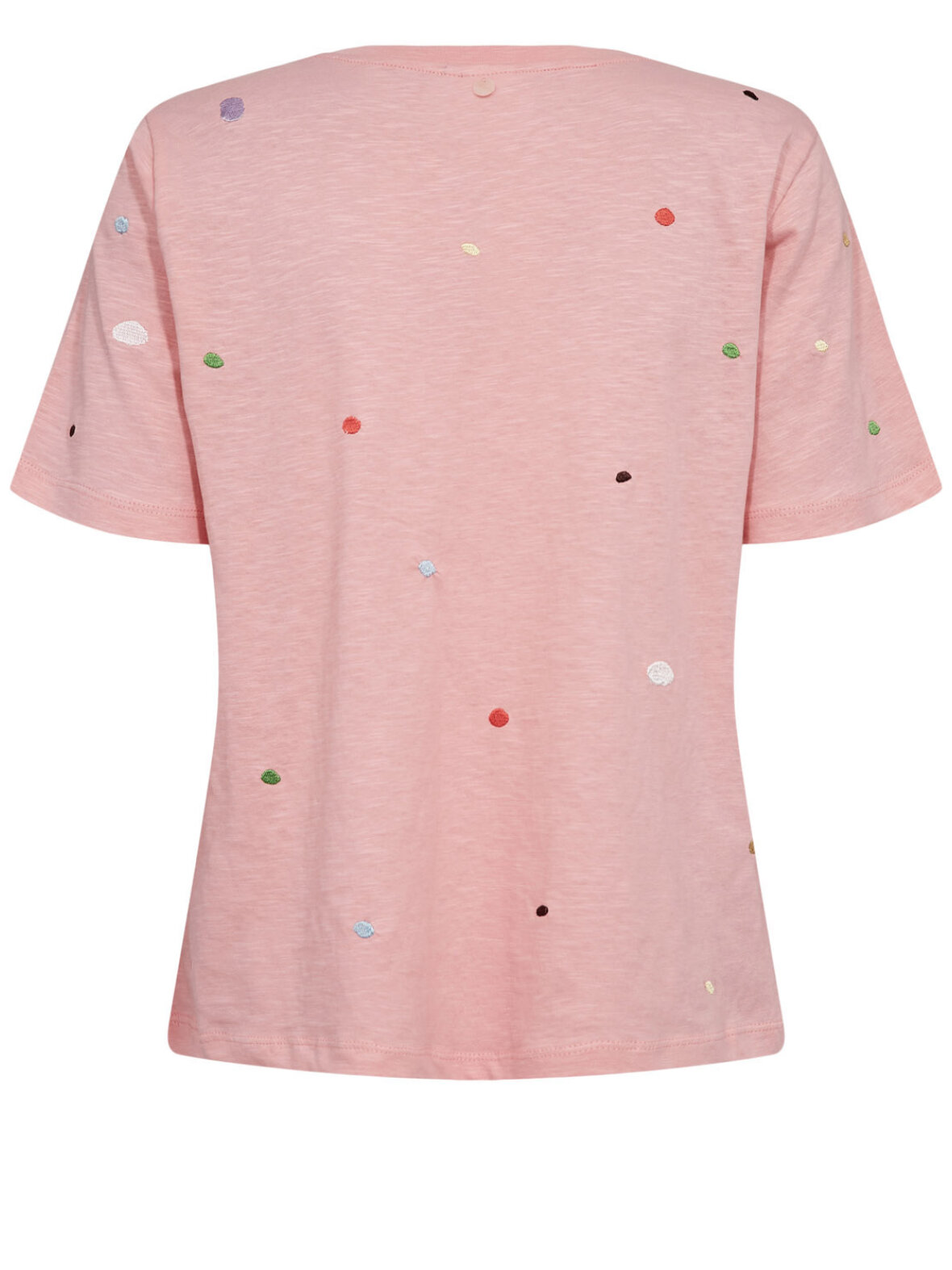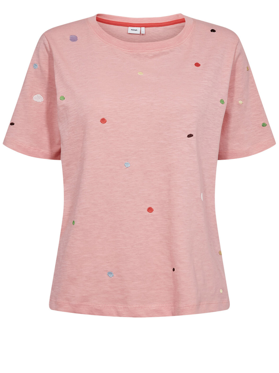 NUDelora T-shirten fås i en skøn peony-farve, der tilføjer et friskt og feminint touch til dit outfit. Med størrelser fra S til XXL er der noget for enhver kropstype. Uanset om du skal på arbejde, til brunch med vennerne eller en afslappet dag derhjemme, vil denne T-shirt være dit go-to valg.