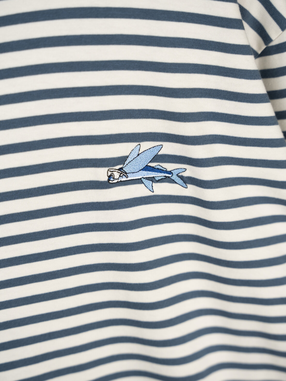 Opdag den nyeste tilføjelse til din garderobe med Ahoy! Mini Flyfish L/S T-shirt fra Lakor. Denne stilfulde T-shirt er designet til mænd, der ønsker at kombinere komfort med et moderne udtryk. Med sit unikke design i farverne Bering Sea og Star White, tilføjer den et friskt pust til enhver outfit.