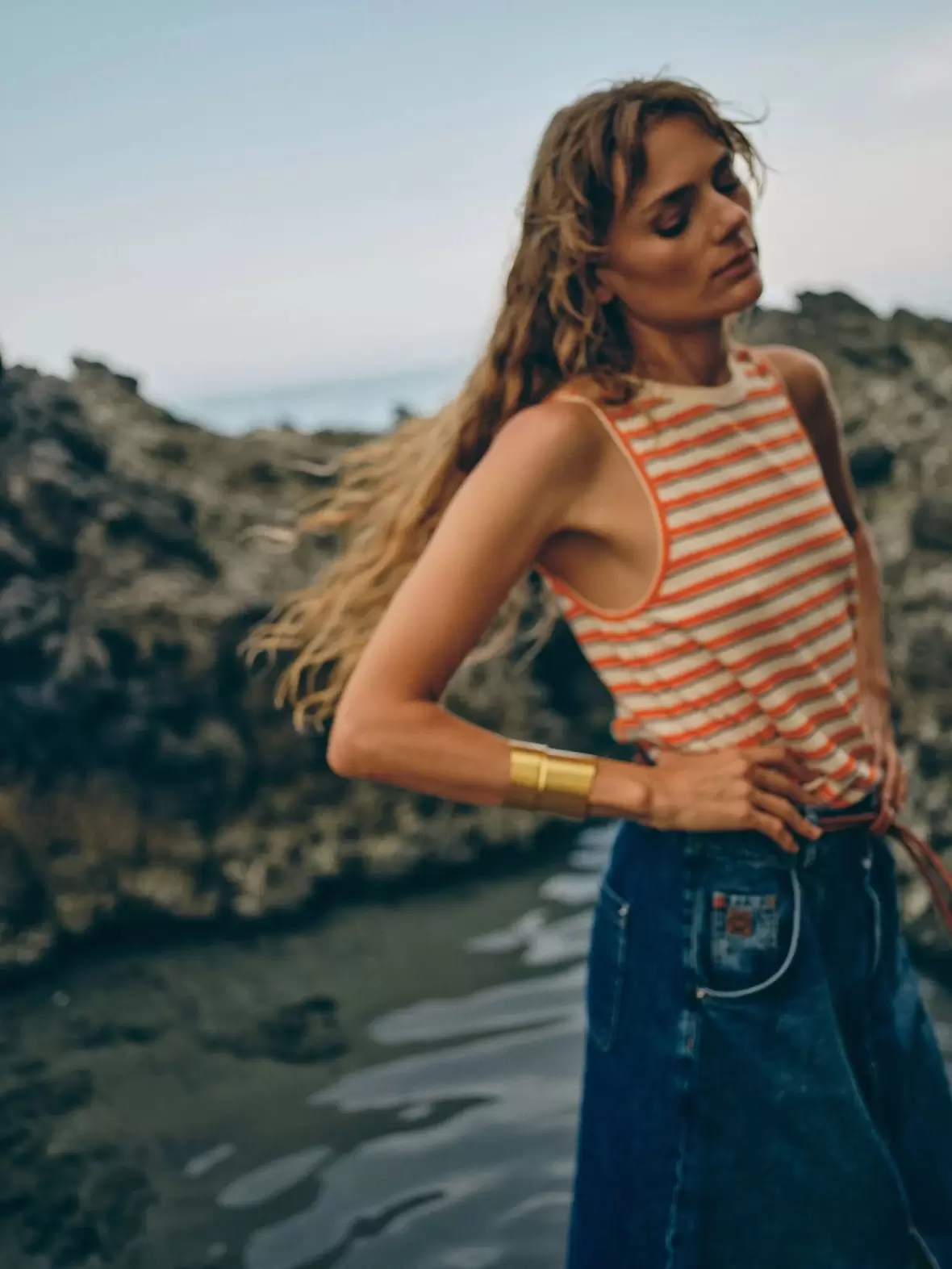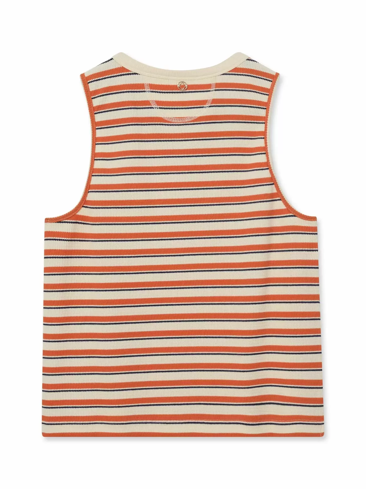Opdag vores nye MMHEra Stripe Top Carrot fra det elskede mærke HEYANNO! Denne trendy top er perfekt til den moderne kvinde, der ønsker at kombinere komfort med stil. Toppen kommer i en livlig karotfarve, der tilføjer et friskt pust til din garderobe. Den er ideel til både hverdag og fest, og kan nemt styles med både jeans og nederdele.