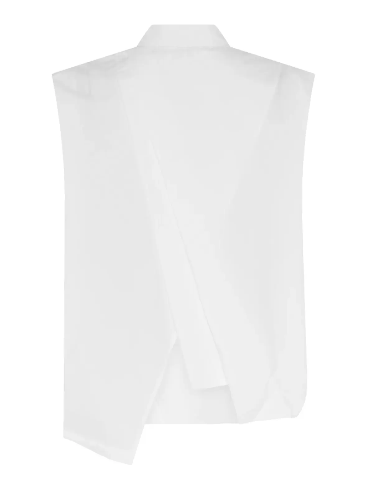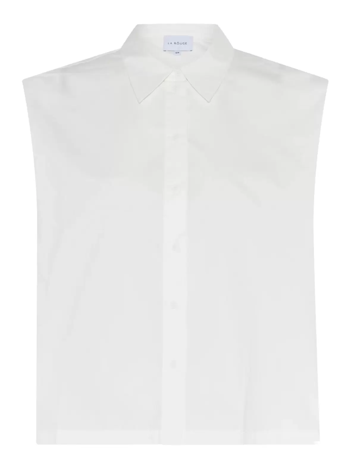 Pia Blouse fra La Rouge - en stilren ærmeløs skjorte med et moderne twist. Pia Blouse er designet i en struktureret bomuldskvalitet, der holder formen og giver et skarpt, sofistikeret udtryk. Fronten er enkel og ren – mens ryggen overrasker med smukke, draperede detaljer, der skaber bevægelse og karakter.
