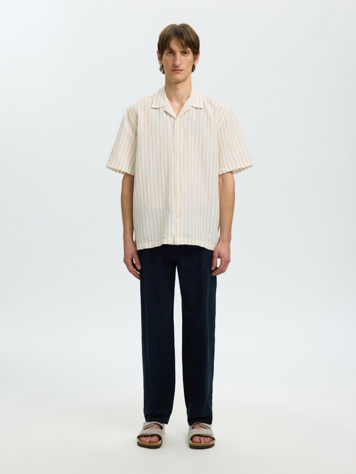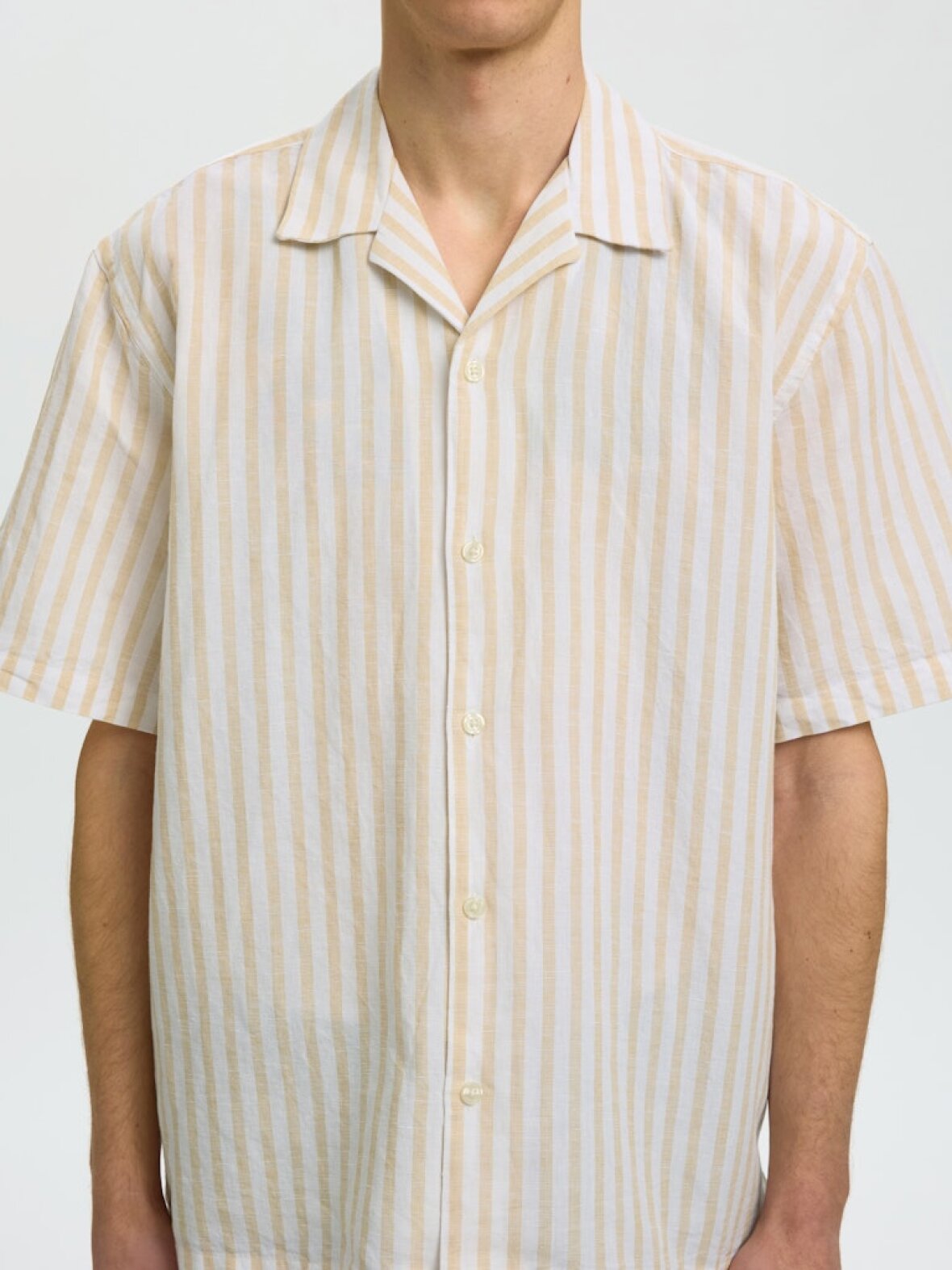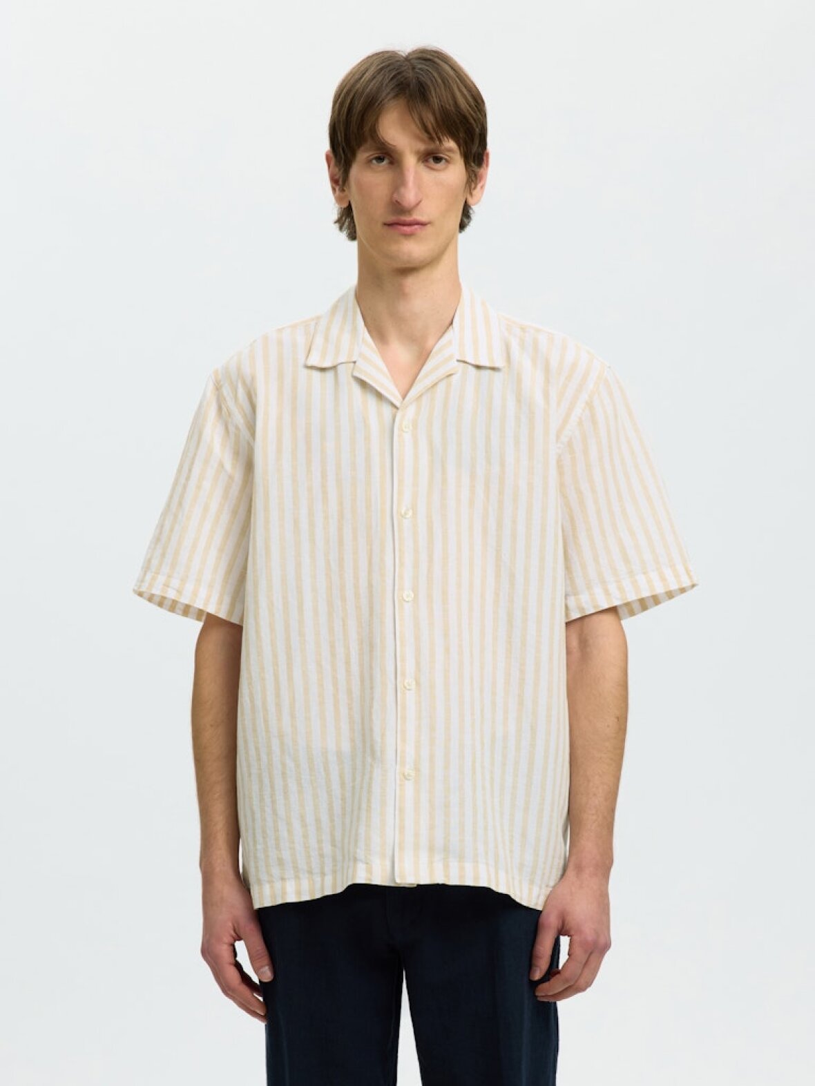 Opdag den perfekte kombination af stil og komfort med SLHRLXCLAY LINENBLEND SKJORTE fra Selected. Denne kortærmede herreskjorte er ideel til både afslappede og semi-formelle anledninger, og vil hurtigt blive en favorit i din garderobe. Den skønne farvekombination i OCHRE/WIDE WHITE giver et friskt og moderne udtryk, som passer perfekt til foråret og sommeren.