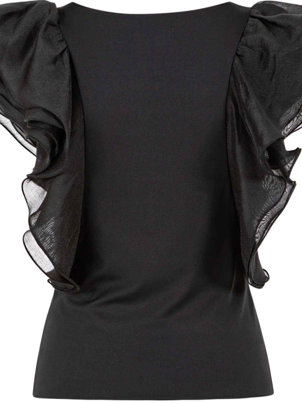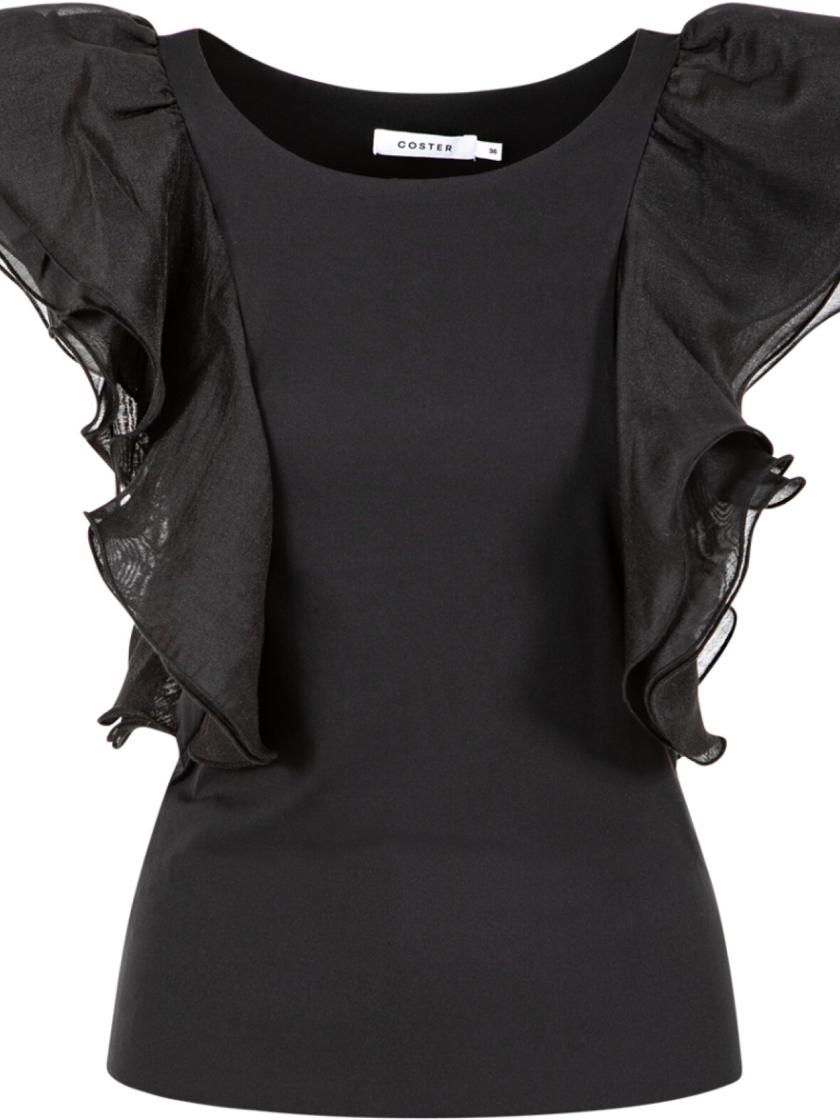 Den smukkeste Top med Flæseærmer i Sort fra Coster Copenhagen, perfekt til enhver stilbevidst kvinde. Denne top er ikke kun en nyhed i vores kollektion, men også et must-have til din garderobe. Med sin elegante sorte farve og unikke flæseærmer tilføjer den et feminint touch til ethvert outfit.