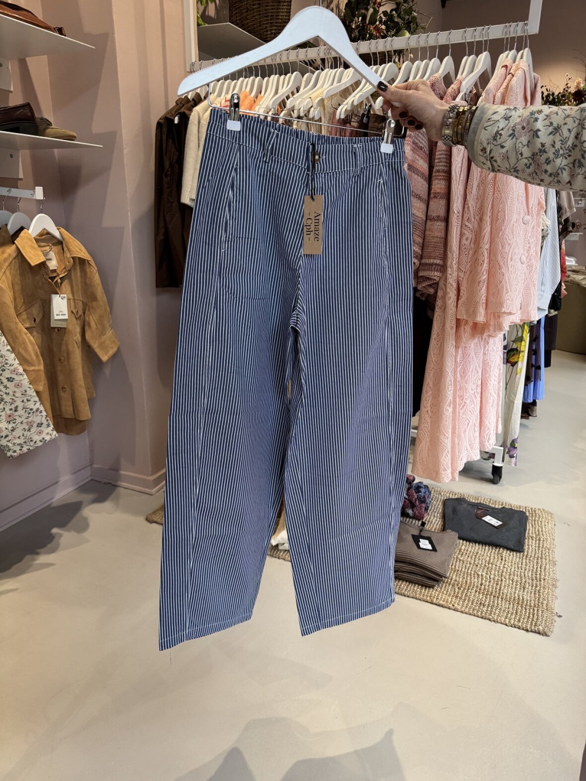 Disse bukser er ikke kun fashionable, men også utroligt behagelige at have på hele dagen. De er ideelle til både afslappede og mere formelle anledninger. Tøv ikke med at tilføje Molly Barrel Stripe Navy til din garderobe – de er en must-have for enhver kvinde, der værdsætter stil og funktionalitet. Gå ikke glip af chancen for at eje et stykke nyt og trendy dametøj fra Amaze Cph!