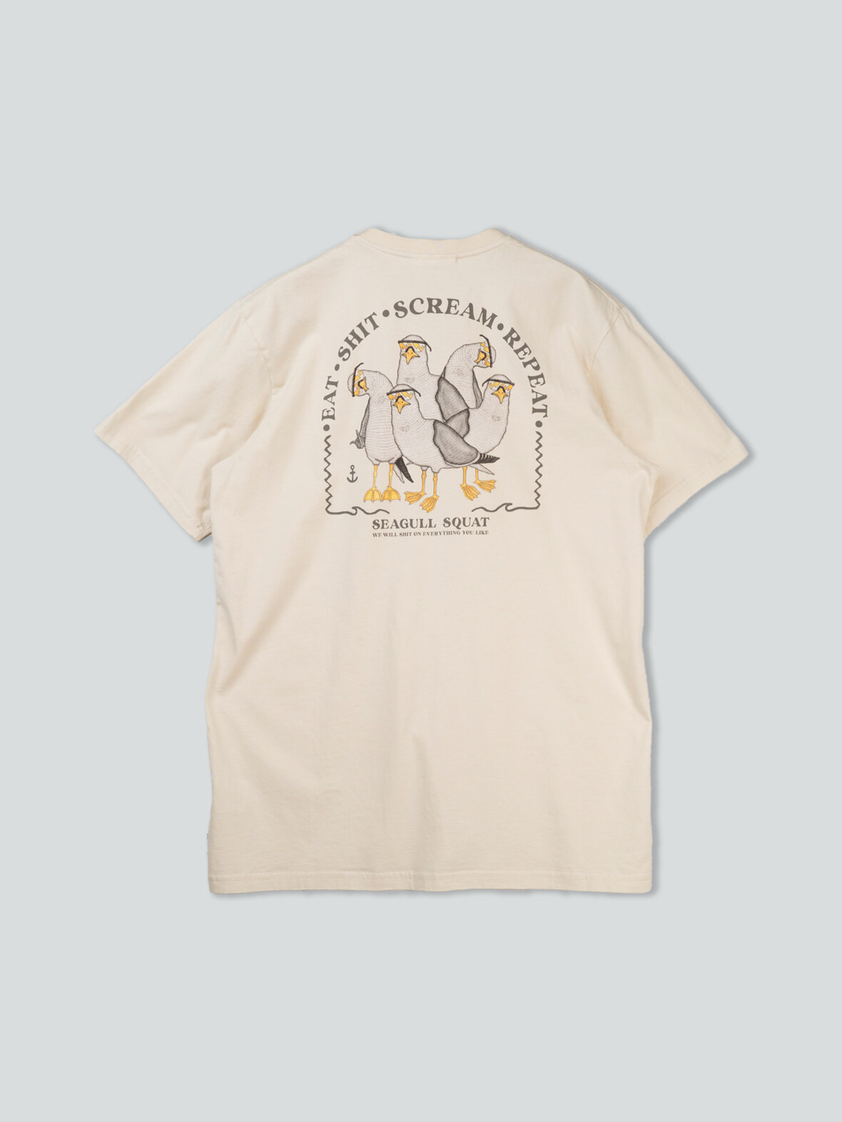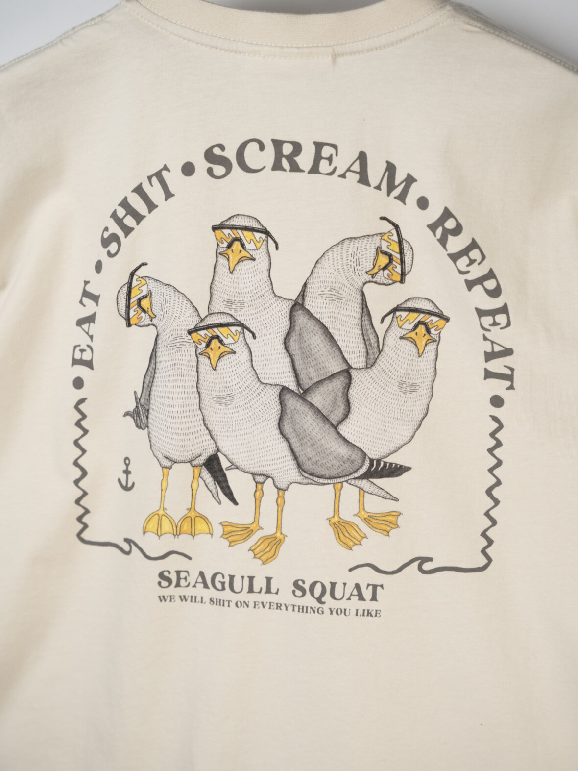 Seagull Squad Back T-shirt er fremstillet af blødt og åndbart materiale, der sikrer en behagelig pasform hele dagen. Den fås i størrelserne M, L, XL, XXL, og 3XL, så du kan finde den perfekte størrelse til netop din kropstype. Den unikke grafik på ryggen tilføjer et sjovt og trendy element, der skiller sig ud og gør din stil unik.