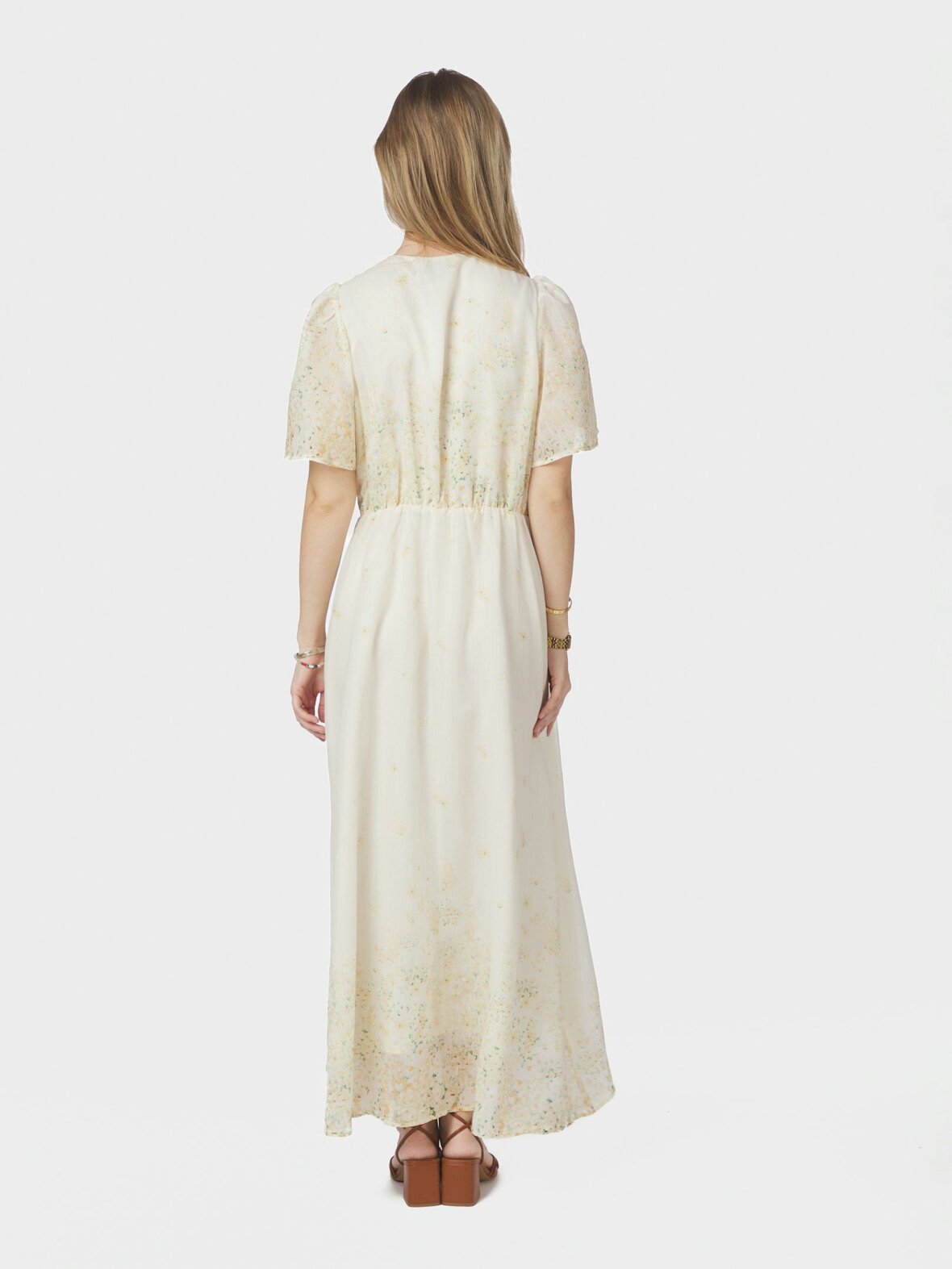 Serna Flower Print Dress fås i størrelserne 34, 36, 38, 40 og 42, så du kan finde den perfekte pasform til din kropstype. Uanset om du skal til en sommerfest, en brunch med vennerne eller blot ønsker at opdatere din garderobe, er denne kjole et must-have.