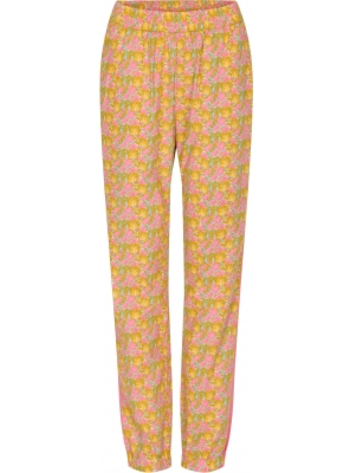Skønne sommerbukser i smukke rosa, gule og mint nuancer. Bella Flower pant er med skrålommer, elastik i taljen og en cool strib ned langs ydersiden af buksen. Buksen har en løs pasform med elastik ved fod. Lækker klassisk hyggebuks, der er perfekt til en t-shirt eller blød sweatshirt.