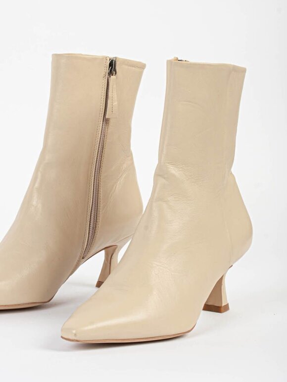 Lækreste forårsstøvle fra Bukela. Samira i en flot, beige farve, der passer perfekt til både fest og hverdag. Den kan nemt styles til både jeans eller en kjole. Den har lynlås og en god hælhøjde.
