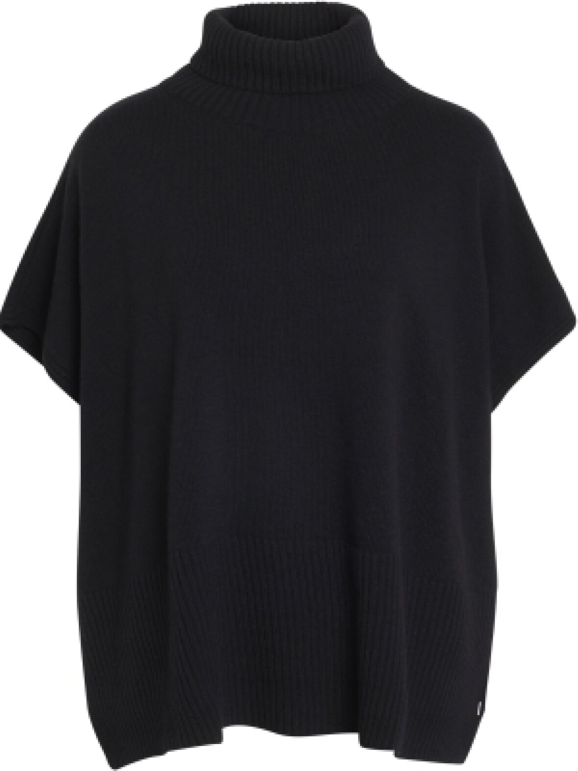 Alba er en poncho i børstet merinould fra Klitmøller med en høj rullekrave og en bred ribstrikket bund.