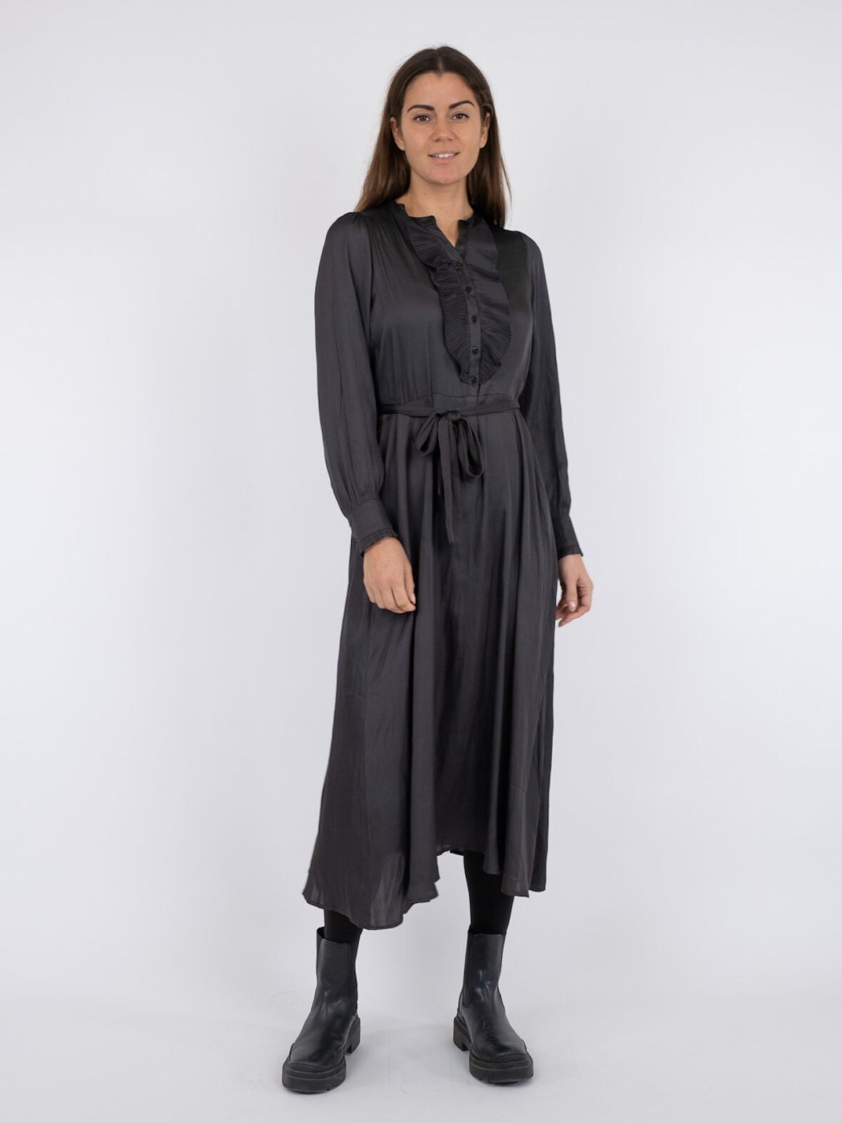 Smuk kjole med flæser med plissé detaljer fra Skønne Neo Noir.