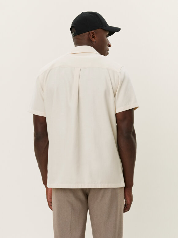 Kingsley er en kortærmet skjorte i kraftig bomuldsblanding, dekoreret med et stort blomsterbroderi samt påsyet lommer foran og afsluttet med en afslappet camp-krave.
